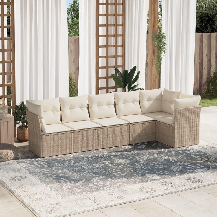 Salon de jardin avec coussins 6 pcs beige resine tressee