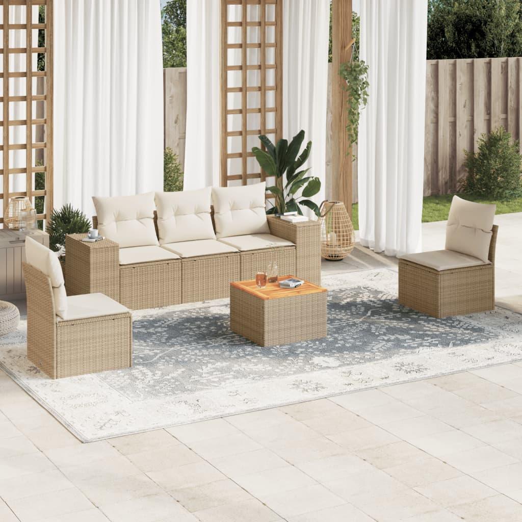 Salon de jardin avec coussins 6 pcs beige resine tressee