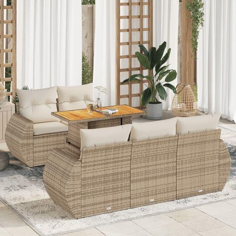 Salon de jardin avec coussins 6 pcs beige resine tressee