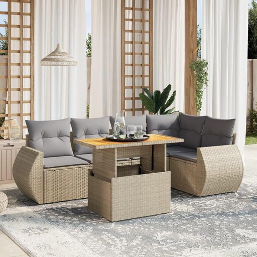 Salon de jardin avec coussins 6 pcs beige resine tressee