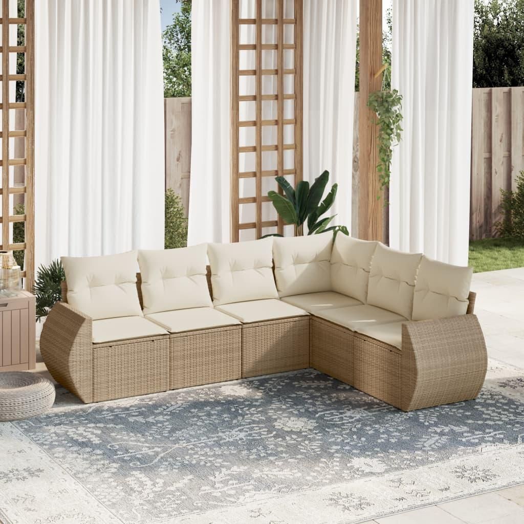Salon de jardin avec coussins 6 pcs beige resine tressee