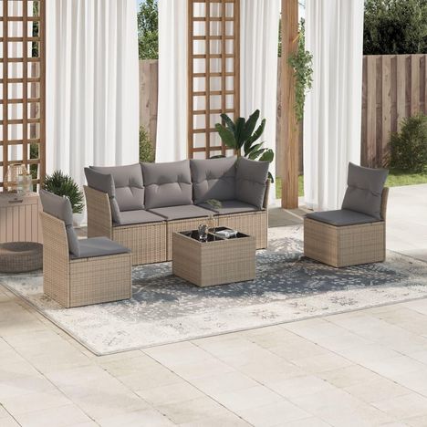 Salon de jardin avec coussins 6 pcs beige resine tressee