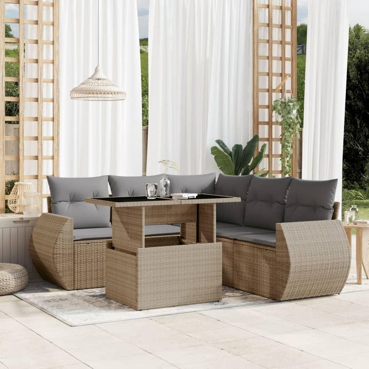 Salon de jardin avec coussins 6 pcs beige resine tressee