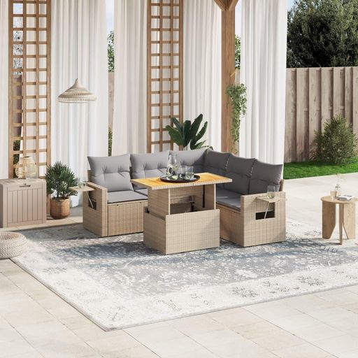 Salon de jardin avec coussins 6 pcs beige resine tressee