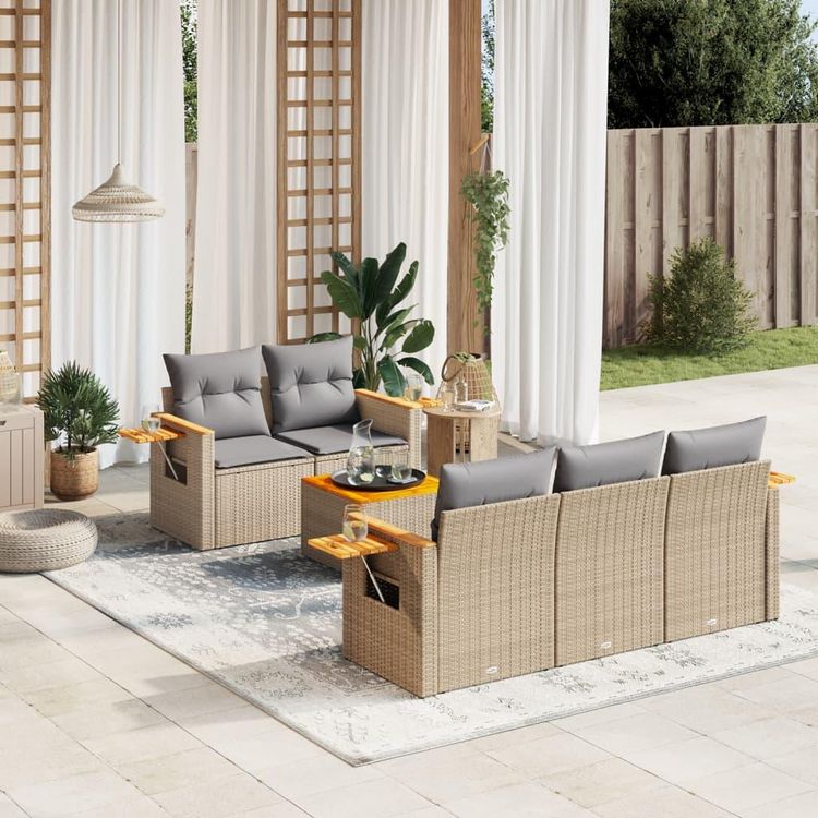 Salon de jardin avec coussins 6 pcs beige resine tressee