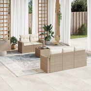 Salon de jardin avec coussins 6 pcs beige resine tressee