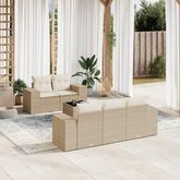 Salon de jardin avec coussins 6 pcs beige resine tressee