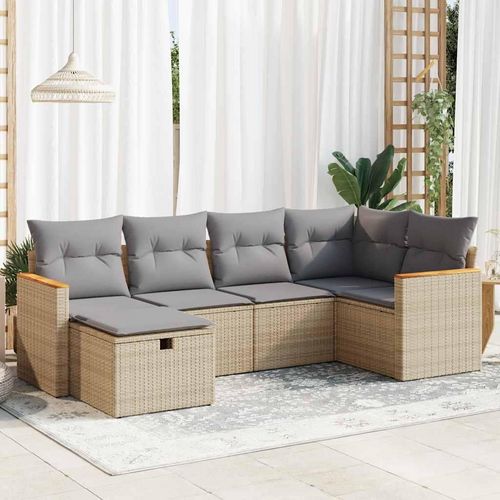 Salon de jardin avec coussins 6 pcs beige resine tressee