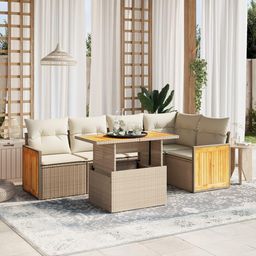 Salon de jardin avec coussins 6 pcs beige resine tressee