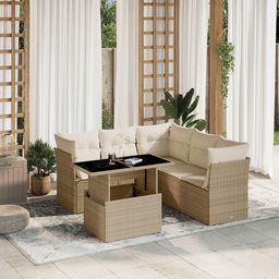 Salon de jardin avec coussins 6 pcs beige resine tressee