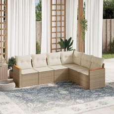 Salon de jardin avec coussins 6 pcs beige resine tressee