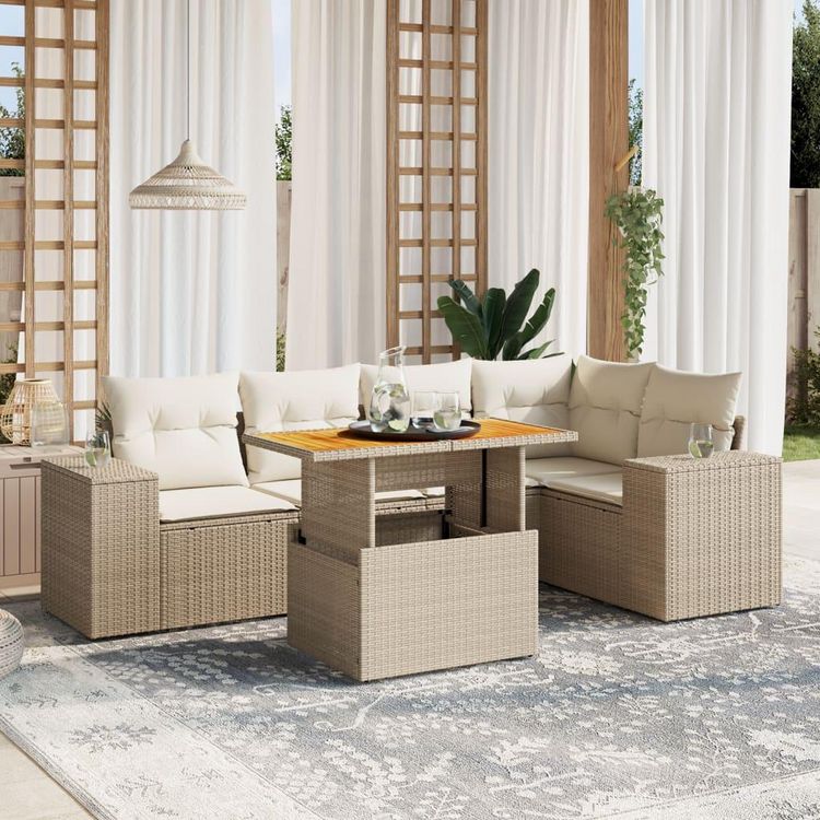Salon de jardin avec coussins 6 pcs beige resine tressee