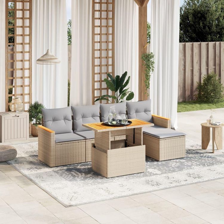 Salon de jardin avec coussins 6 pcs beige resine tressee