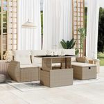 Salon de jardin avec coussins 6 pcs beige resine tressee
