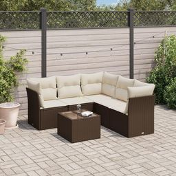 Salon de jardin avec coussins 6 pcs marron resine tressee