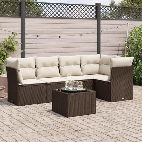 Salon de jardin avec coussins 6 pcs marron resine tressee