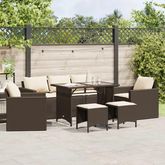 Salon de jardin avec coussins 6 pcs marron resine tressee