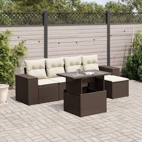 Salon de jardin avec coussins 6 pcs marron resine tressee
