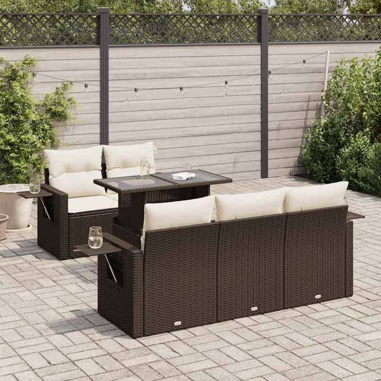 Salon de jardin avec coussins 6 pcs marron resine tressee