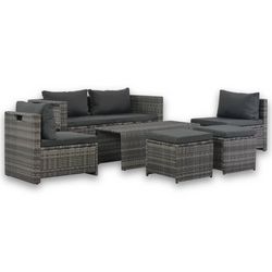Salon de jardin avec coussins 6 pcs Resine tressee Gris