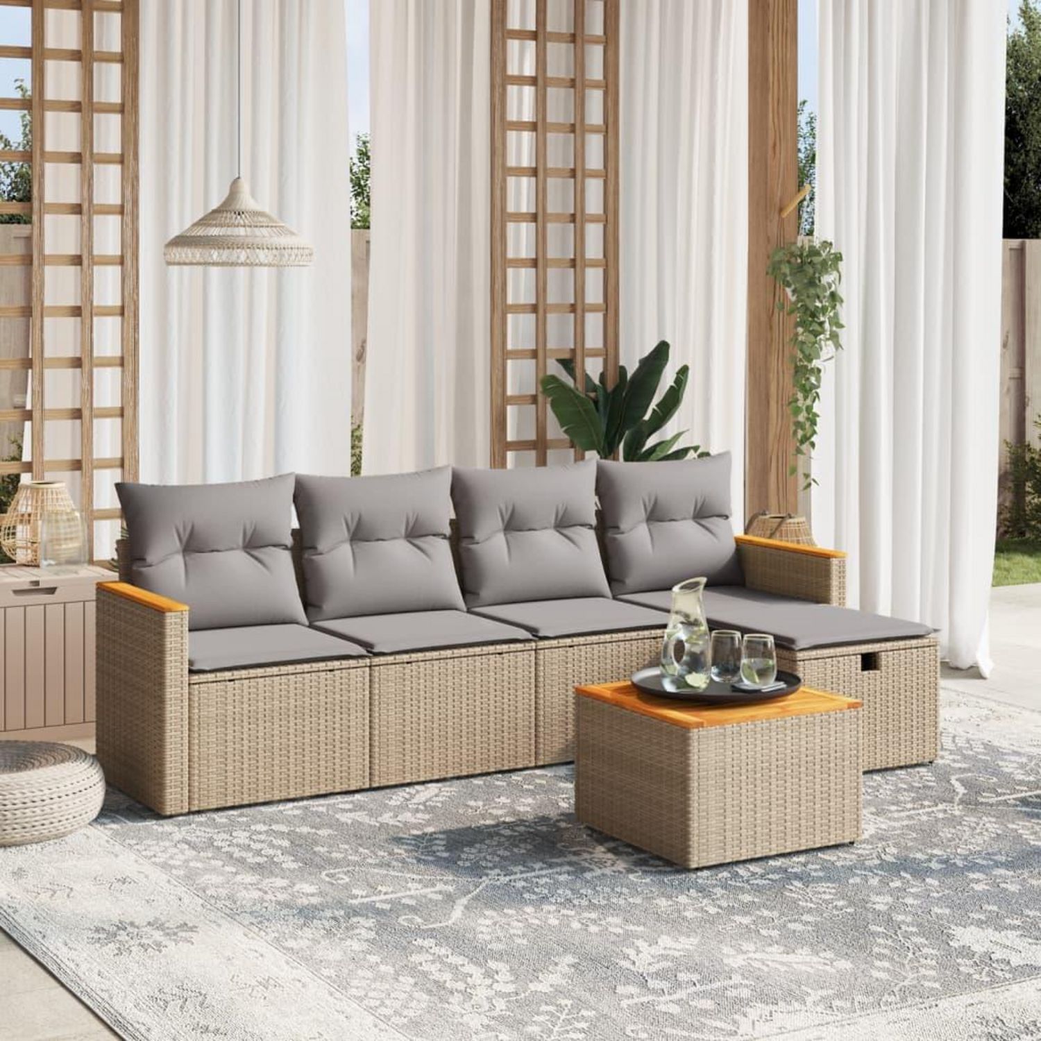 Salon de jardin avec coussins 6pcs melange beige resine tressee