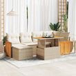 Salon de jardin avec coussins 7 pcs beige resine tressee acacia
