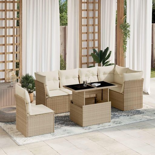 Salon de jardin avec coussins 7 pcs beige resine tressee