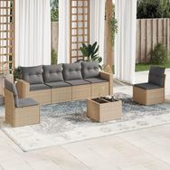 Salon de jardin avec coussins 7 pcs beige resine tressee