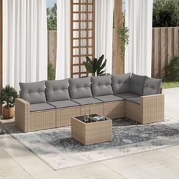 Salon de jardin avec coussins 7 pcs beige resine tressee