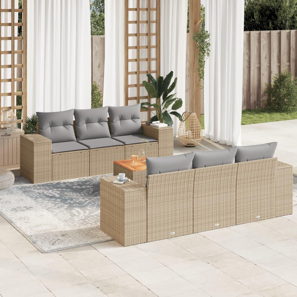 Salon de jardin avec coussins 7 pcs beige resine tressee