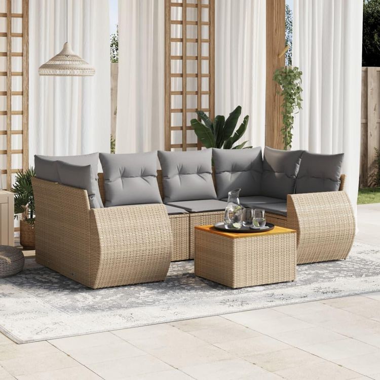 Salon de jardin avec coussins 7 pcs beige resine tressee