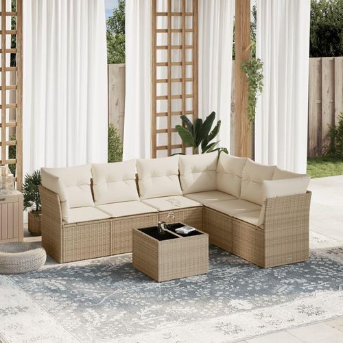 Salon de jardin avec coussins 7 pcs beige resine tressee