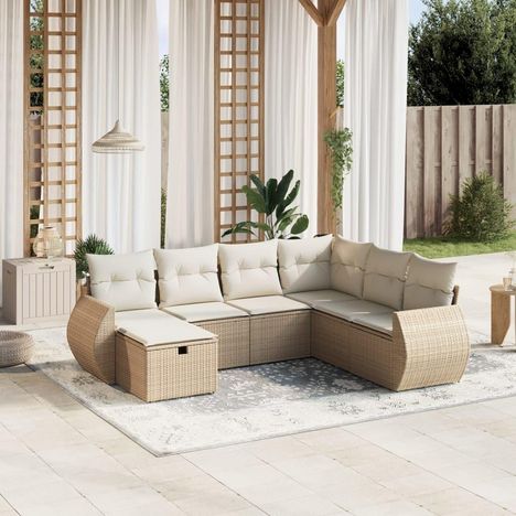 Salon de jardin avec coussins 7 pcs beige resine tressee