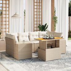 Salon de jardin avec coussins 7 pcs beige resine tressee