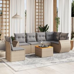 Salon de jardin avec coussins 7 pcs beige resine tressee