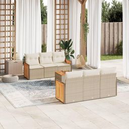 Salon de jardin avec coussins 7 pcs beige resine tressee