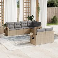 Salon de jardin avec coussins 7 pcs beige resine tressee