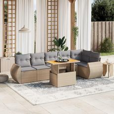 Salon de jardin avec coussins 7 pcs beige resine tressee