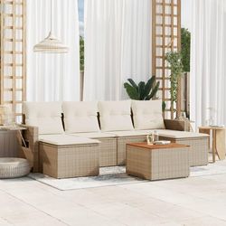 Salon de jardin avec coussins 7 pcs beige resine tressee