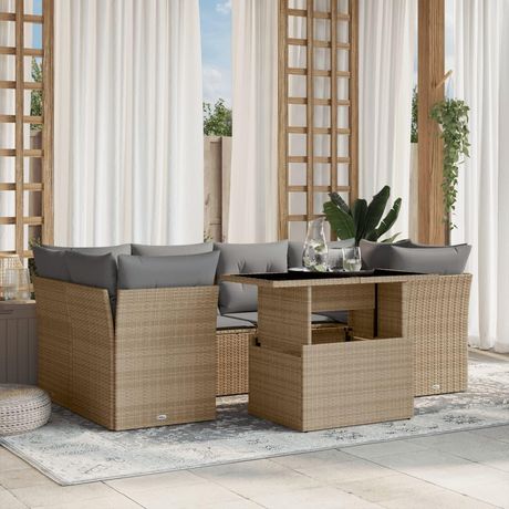 Salon de jardin avec coussins 7 pcs beige resine tressee