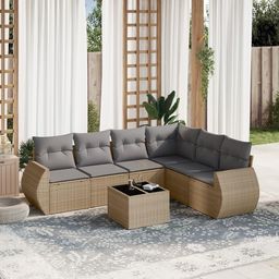 Salon de jardin avec coussins 7 pcs beige resine tressee