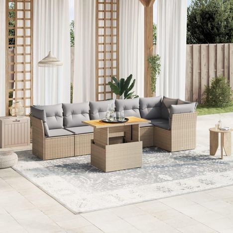 Salon de jardin avec coussins 7 pcs beige resine tressee