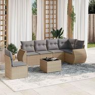 Salon de jardin avec coussins 7 pcs beige resine tressee