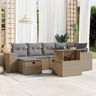 Salon de jardin avec coussins 7 pcs beige resine tressee