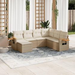 Salon de jardin avec coussins 7 pcs beige resine tressee