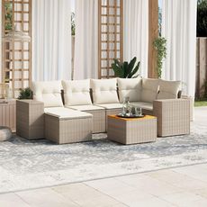 Salon de jardin avec coussins 7 pcs beige resine tressee