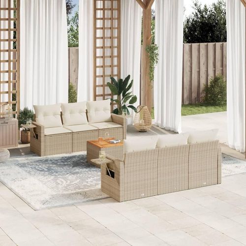 Salon de jardin avec coussins 7 pcs beige resine tressee