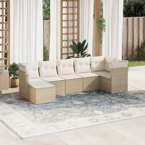 Salon de jardin avec coussins 7 pcs beige resine tressee
