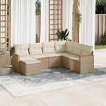 Salon de jardin avec coussins 7 pcs beige resine tressee