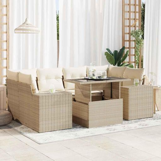 Salon de jardin avec coussins 7 pcs beige resine tressee